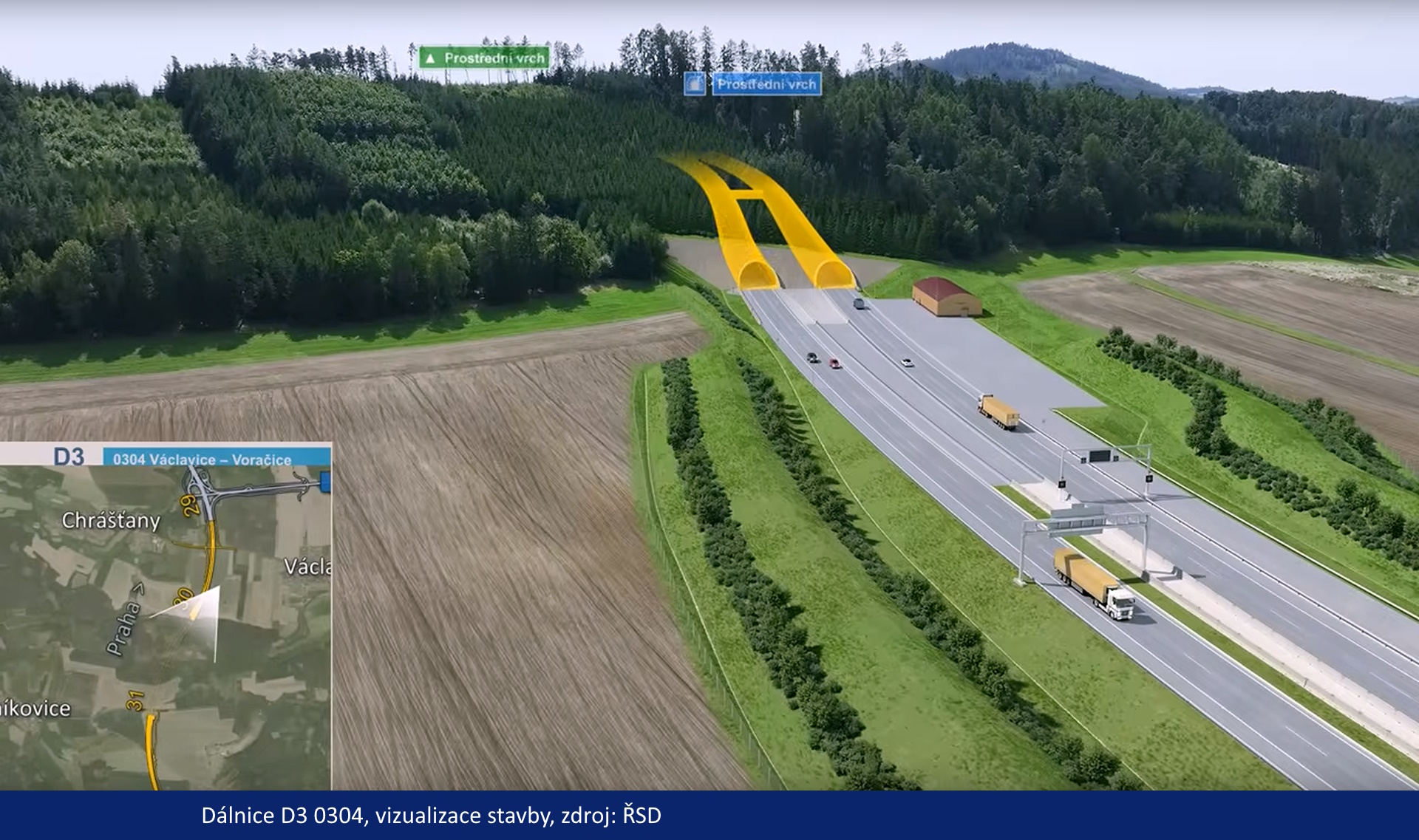 Stavba Václavice – Voračice je součástí souboru staveb dálnice D3 ve Středočeském kraji. Je jednou z mnoha staveb dálnice D3, které řeší postupné převedení dopravy ze silnice I/3 ke státní hranici s Rakouskem na plnohodnotnou dálnici. V rámci přípravy stavby úseku Václavice – Voračice nyní probíhá geodetické oddělování hranic pozemků pro tvorbu geometrických plánů a znaleckých posudků. Majetkoprávní příprava je zahájena a připravuje se rozesílání návrhů kupních smluv. Dále také pokračuje příprava doplňujícího geotechnického průzkumu pro 950 m dlouhý tunel Prostřední vrch. Jedná se o inženýrskogeologický průzkum, který bude realizován formou ražby průzkumné štoly.