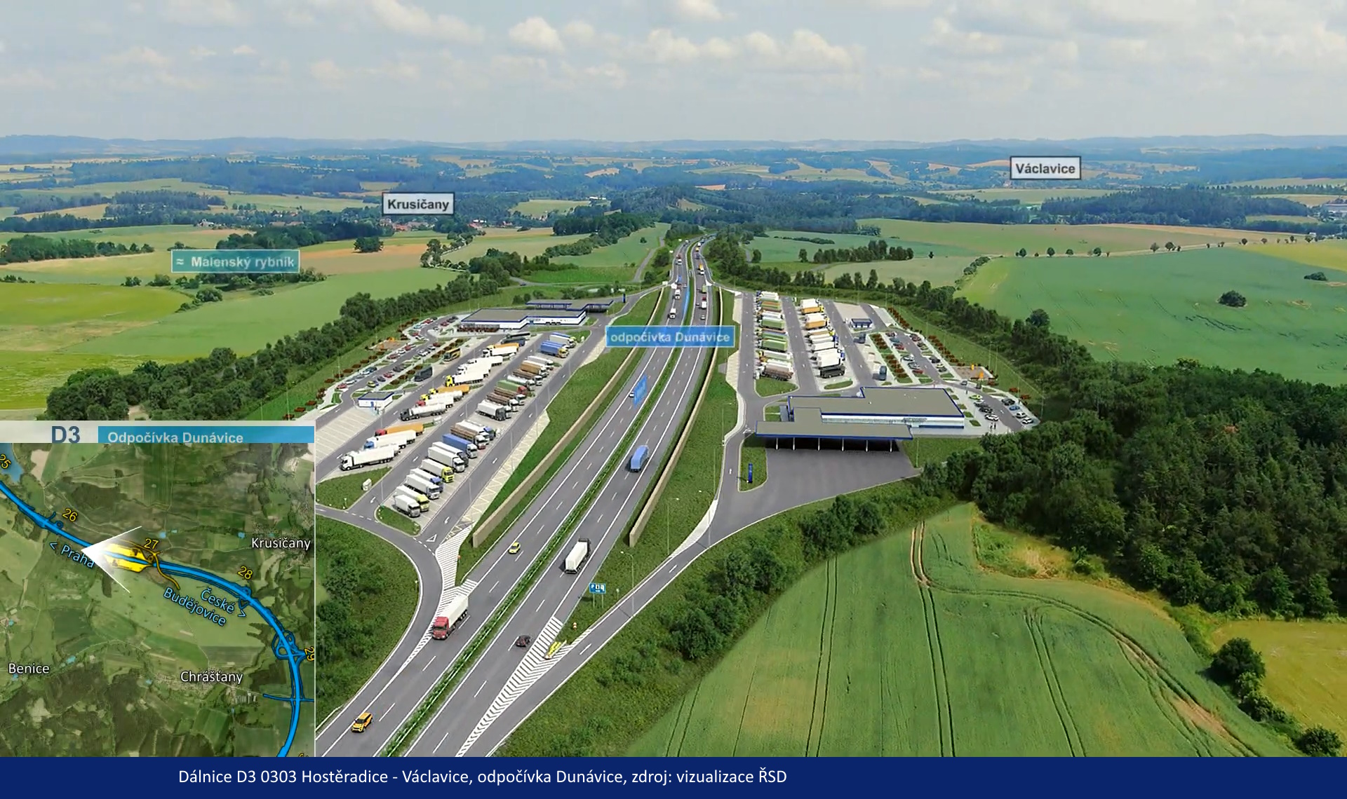 Krajský úřad Středočeského kraje vydal závazné stanovisko k posouzení vlivu záměru na životní prostředí (EIA) pro stavbu velkokapacitní odpočívky Dunávice na budoucí středočeské části dálnice D3. Stalo se tak po čtyřletém úsilí Ředitelství silnic a dálnic s.p. (ŘSD), které odpočívku připravuje v rámci budoucího dálničního úseku Hostěradice – Václavice.