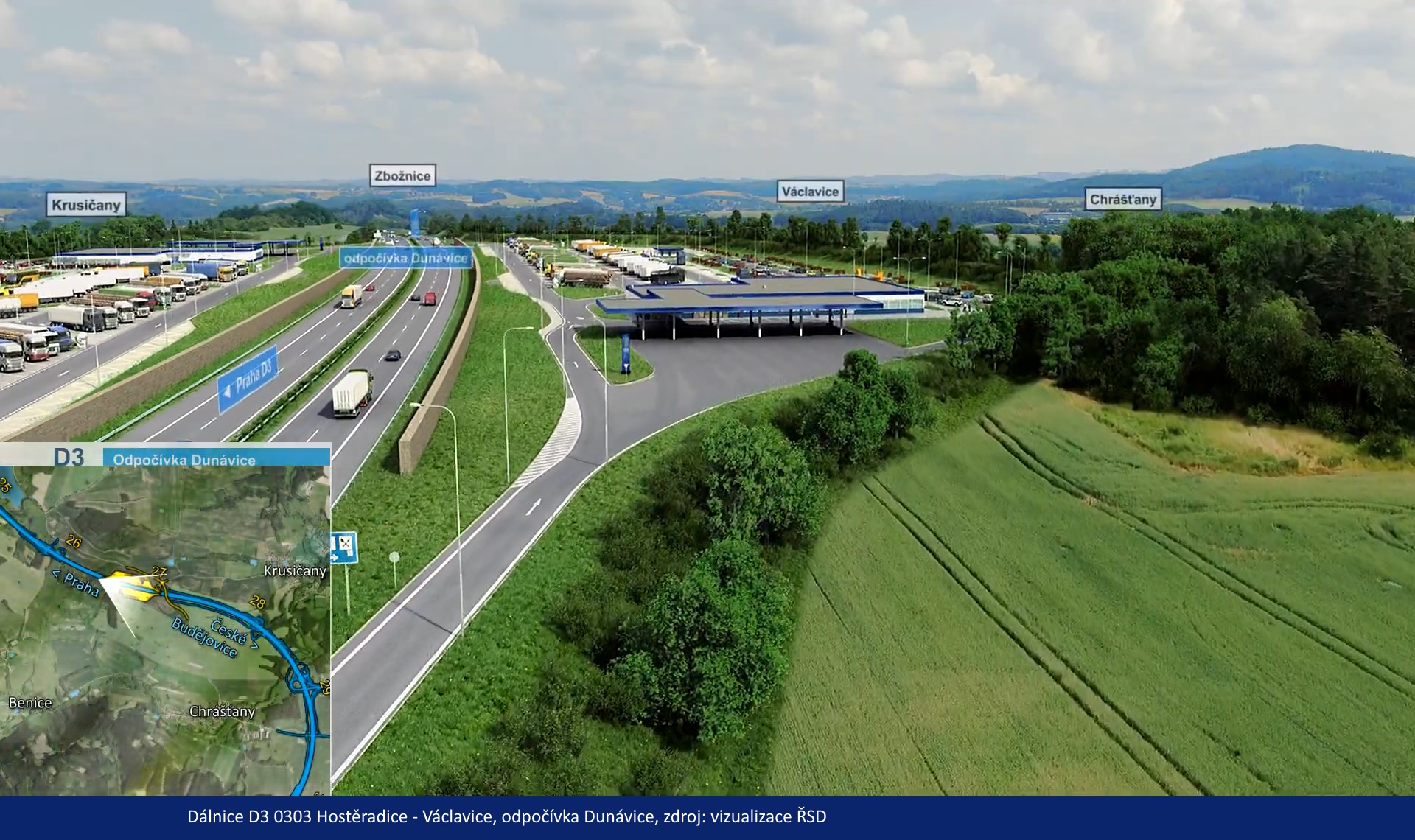 Vizualizace odpočívky: ŘSD ČR - Dálnice D3 Odpočívka Dunávice